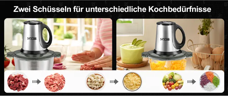 F¨¹r alle, die gerne kochen aber keine Zeit verlieren wollen: Der SPZTJK Elektrozerkleinerer ist ein Must-Have! Macht die Vorbereitung so einfach.