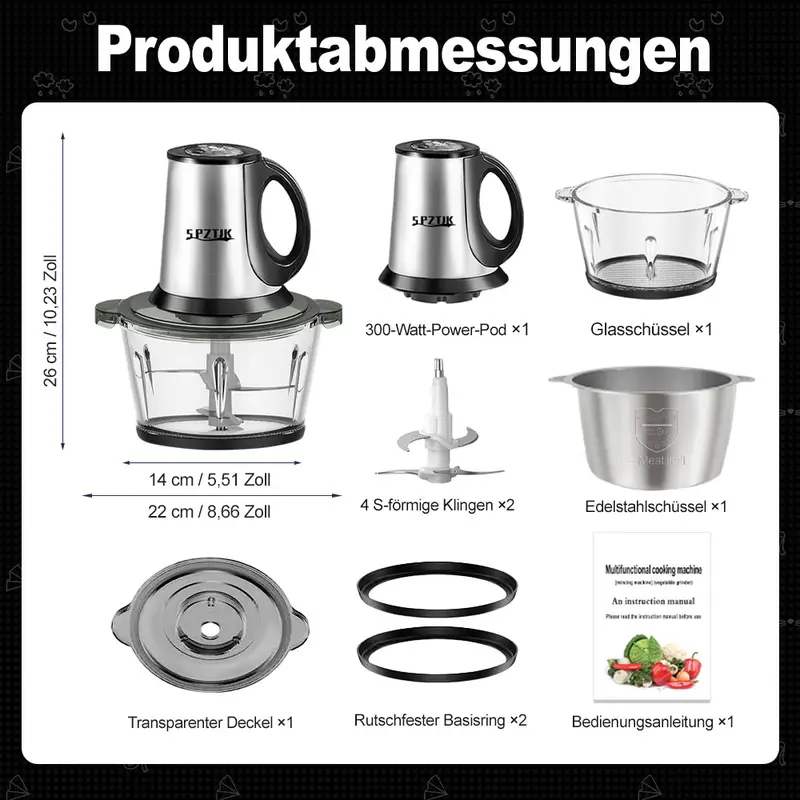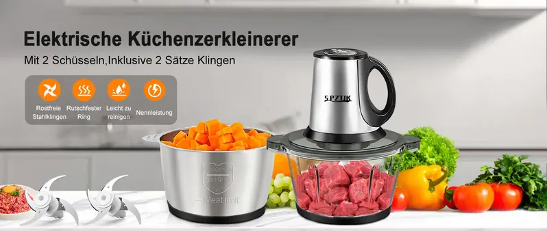 Der SPZTJK Elektrozerkleinerer hat meine K¨¹chenarbeit total vereinfacht! Hacken von Fleisch und Gem¨¹se geht in Sekunden ¨C super praktisch.